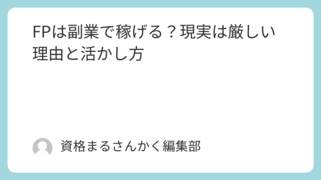 FP(ファイナンシャルプランナー) FPは副業で稼げる?現実は厳しい理由と活かし方 FPは副業で稼げる?資格だけでは厳しい現実を解説。稼げない理由、実務経験が必要な背景、現実的な活かし方と副業目的なら選ぶべきスキルまで本音で紹介。 2026.01.11 FP(ファイナンシャルプランナー)副業