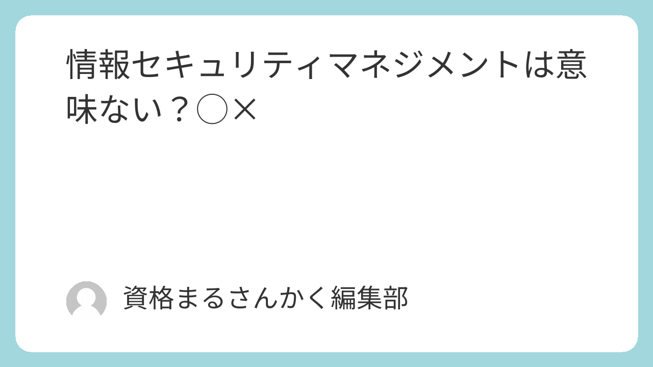 「情報セキュリティマネジメントって意味ある?」