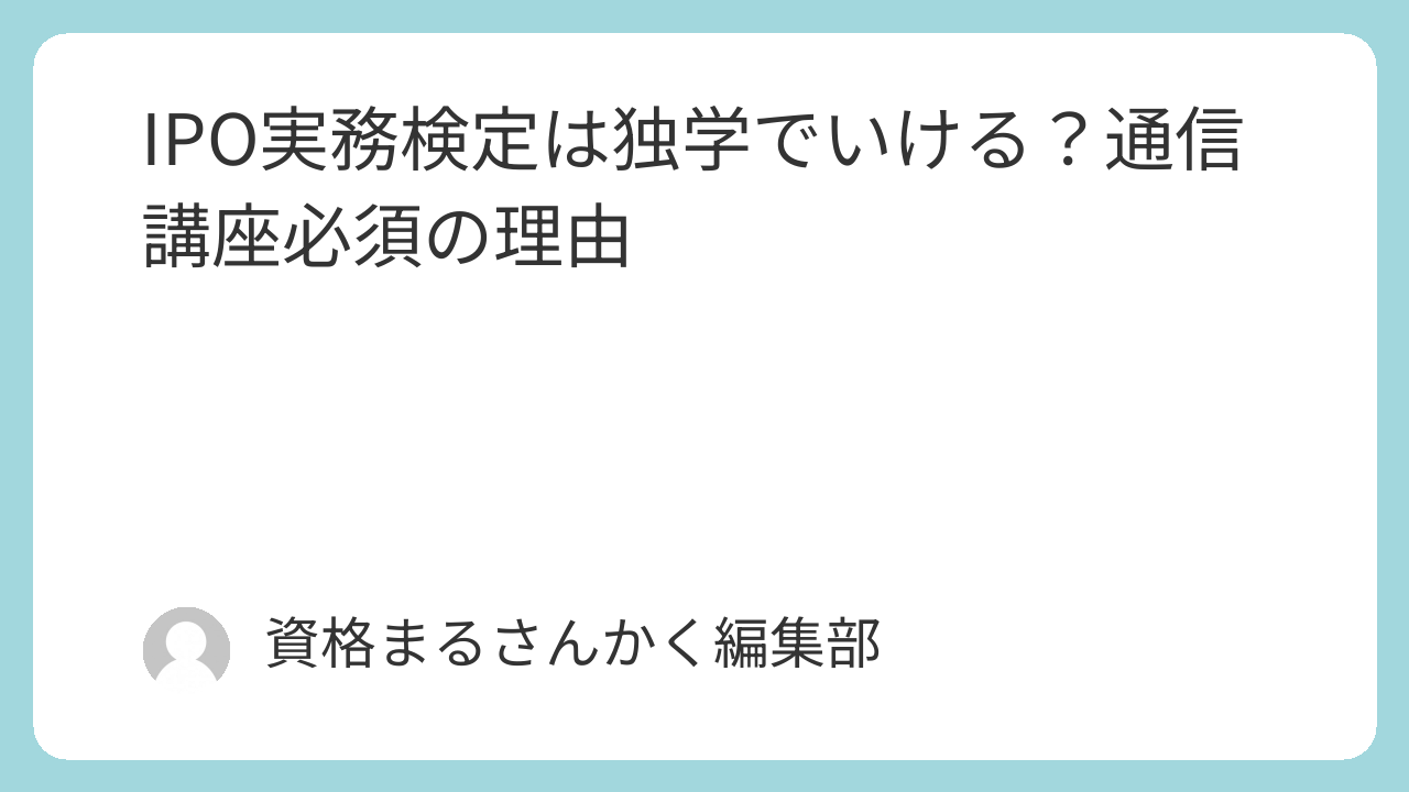 「IPO支援の実務経験があったので、独学でも合格できた。ただし、全体像を掴むのに時間がかかった。」
